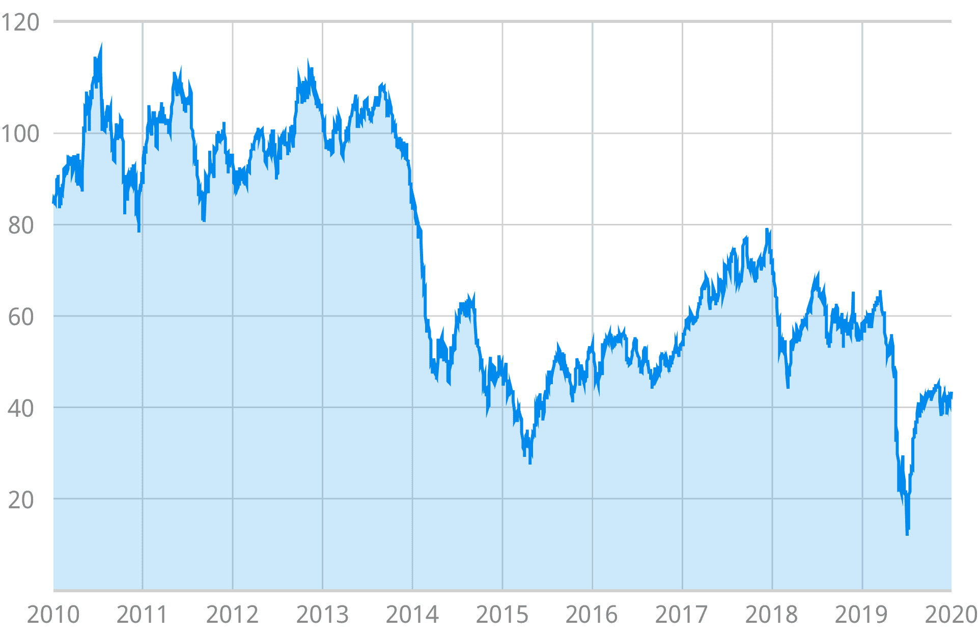 WIT原油價格10年日線圖走勢